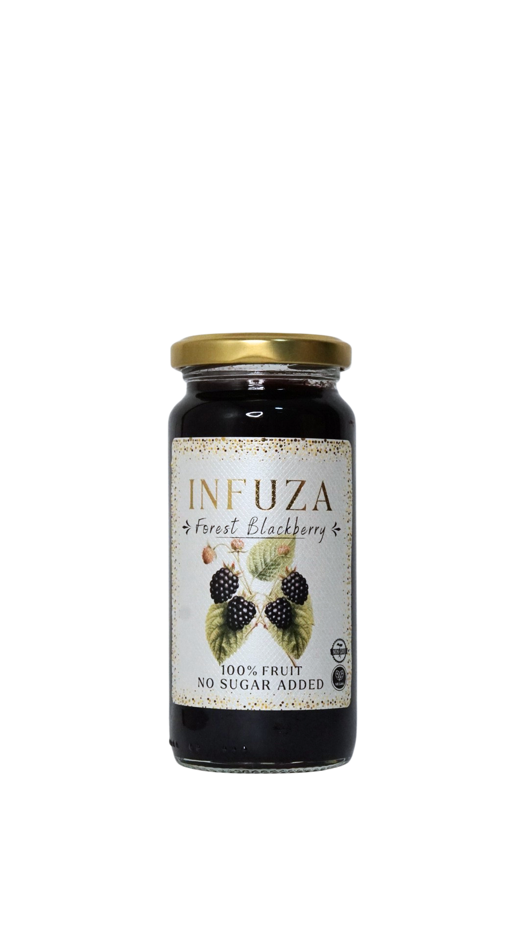 Indulge in the pure taste of nature with INFUZA's Forest Blackberry Premium Fruit Spread. Made from wild blackberries that grow naturally in the forests, our spread captures the authentic flavor of this exquisite fruit. With no added sugar, artificial colors or flavors, and no preservatives, every jar offers a wholesome and delicious experience.